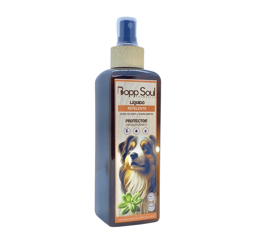 Il liquido naturale repellente di Bopp Soul è altamente efficace contro pulci, zecche e zanzare.
